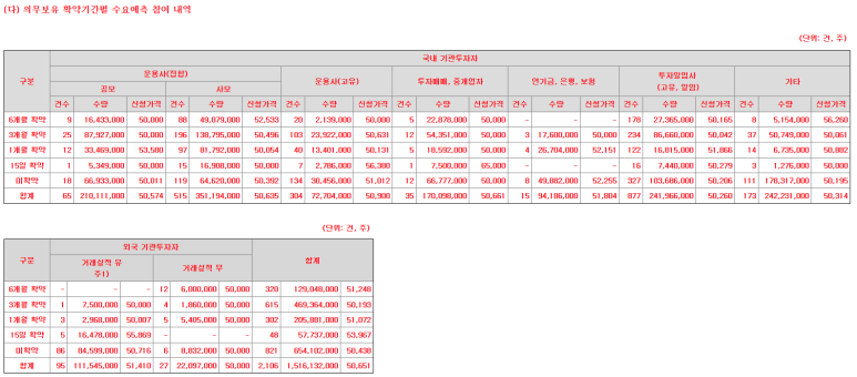 이번 수요예측결과를 참고해 투자 판단에 활용하시기 바랍니다.
