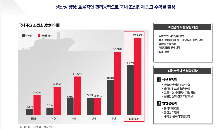 재무 구조가 탄탄해졌고, 공정률 92%의 도크 내 공정 능력은 업계 최고 수준입니다.