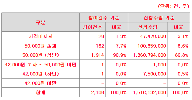 ✅ 대한조선 공모주 수요예측결과 요약 표